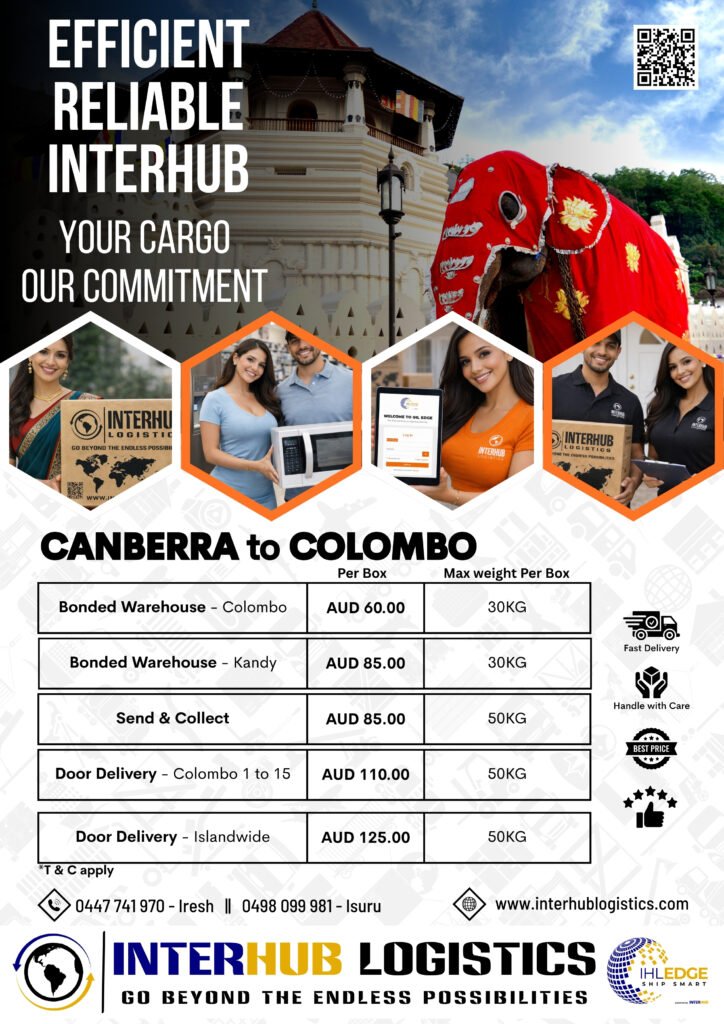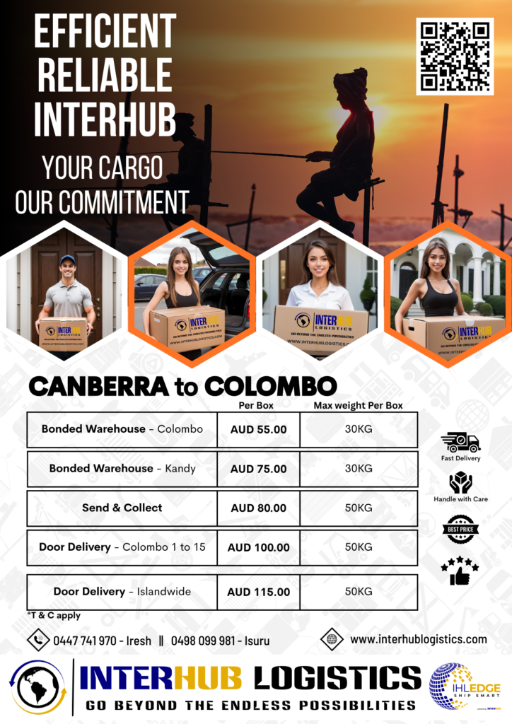 We offer transparent and competitive pricing for shipments from Canberra (CBR) to Colombo (CMB).