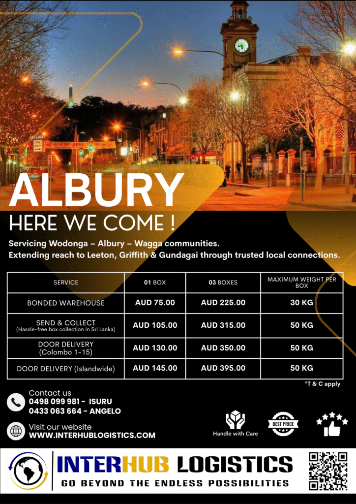 We offer transparent and competitive pricing for shipments from Albury (ABX) to Colombo (CMB).