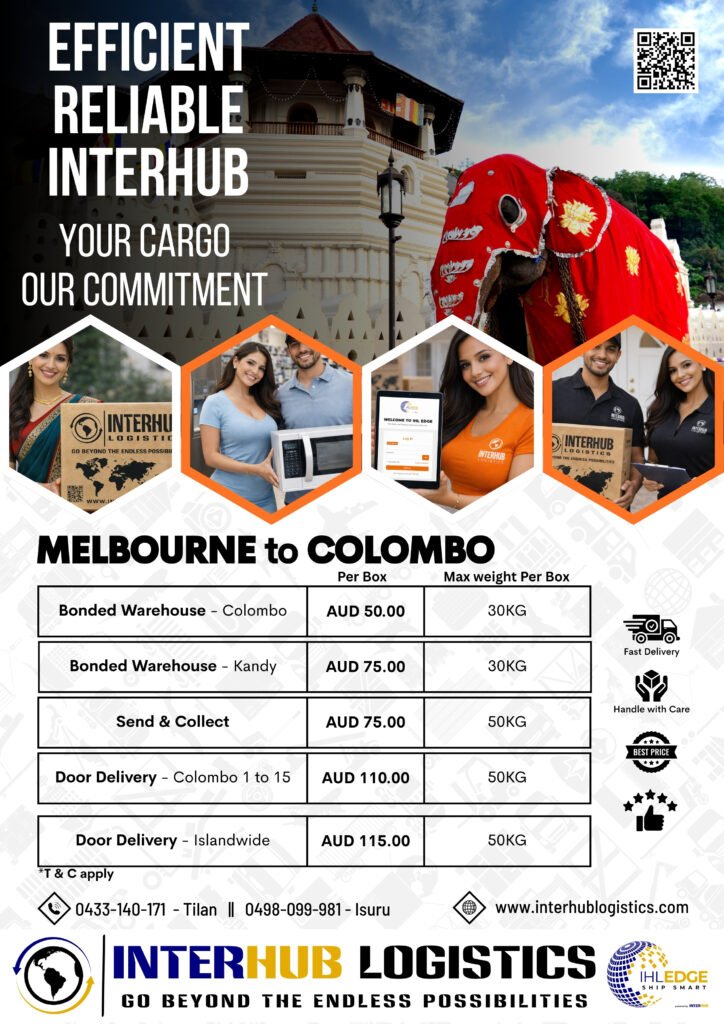 We offer transparent and competitive pricing for shipments from Melbourne (MEL)  to Colombo (CMB).